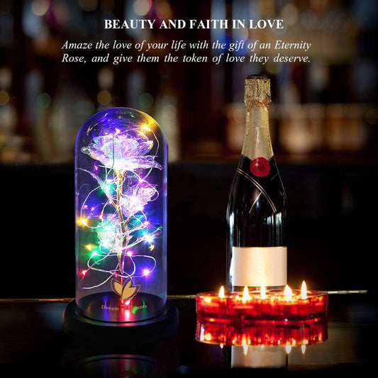 Beauty and the Beast Rose Set Galaxy Rose Artificial Flower Gold Rose Valentine'S Day Thanksgiving Mother'S Day Christmas Girl Birthday Gift (24K Colorful Rose)