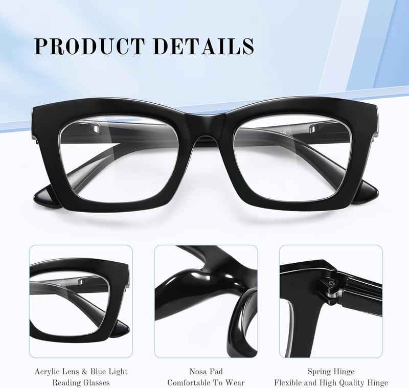 - [Stylish Design]Reading glasses women combine function and fashion. Classic Oprah style frames and chic color options make these blue light reading glasses a stylish accessory for any outfit or occasion