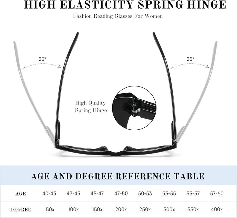 - [High Quality Reading Glasses]The adjustable spring hinge design and high-quality frame ensure a comfortable fit, making it suitable for different facial shapes while reducing head pressure. Fashionable optical quality glasses with unique lens clarity,make your vision shine brightly.