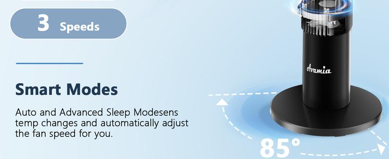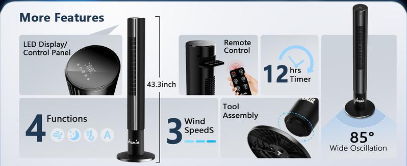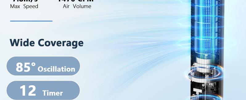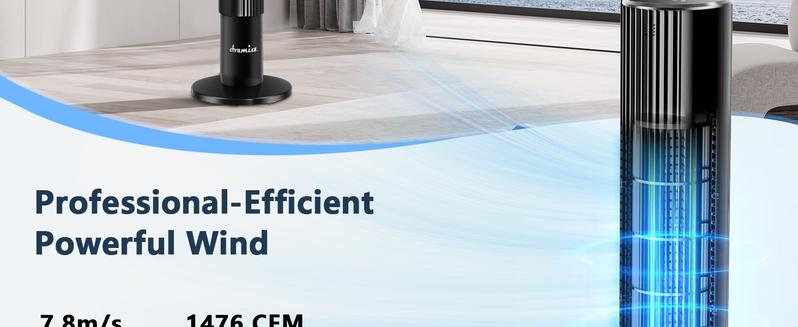 - Powerful Cooling for Large Spaces: With wind speeds up to 26 ft/s and an impressive 1476 CFM airflow, this tower fan efficiently cools bedrooms, living rooms, and offices. The 85° wide-angle oscillation ensures fresh air circulates evenly throughout the room.